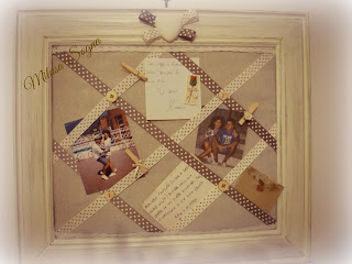 Un pò di stoffa e del nastro ( da inguaribile romantica che sono), la mia cornice è diventata un portafoto-ricordi